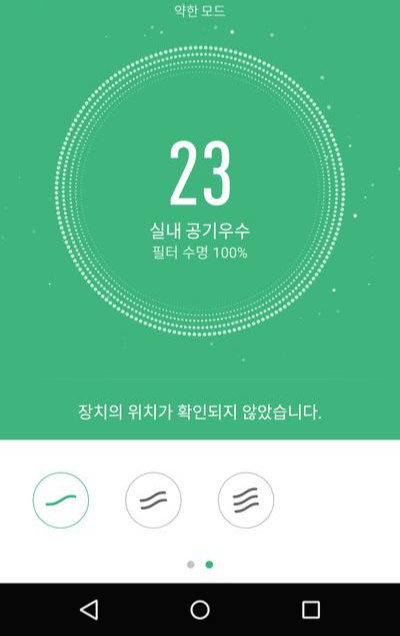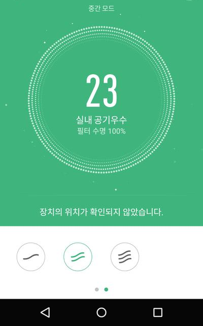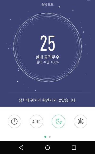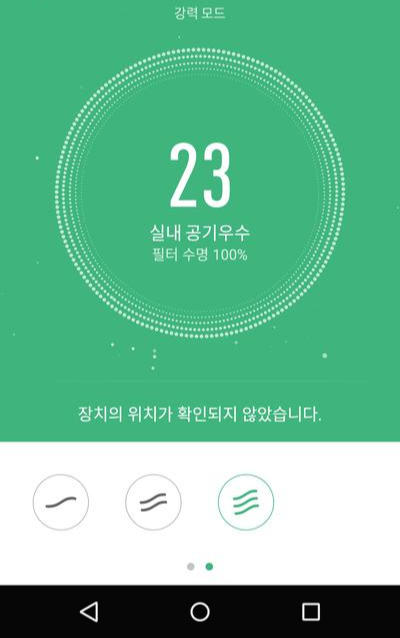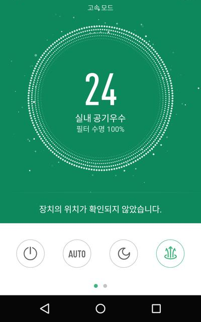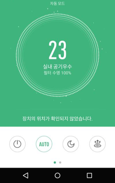 어플에서는 미세먼지농도 확인, 필터 수명 확인, 자동, 취침, 터보, 1단, 2단, 3단 선택이 가능합니다.