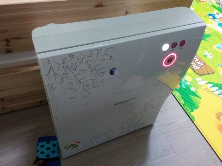그러면서 공기질을 측정해서 공기가 나빠지면 자동으로 제품이 auto모드로 켜집니다. 그리고 다시 일정한 값 이하로 떨어지면 자동으로 꺼집니다. 보통은 이 모드로 해두고 사용하고 있으며 자기 전에 애들 방에서 터보로 한 2~30분 돌려요. (터보 모드로 켜 두면 한 2~30분 뒤에 auto로 변경되고 또 공기질 측정 모드가 켜져 있으면 알아서 꺼져있습니다.) 그리고 평소에는 거실에 두고 꺼져있으면 그냥 심심할 때 버튼만 누르고 지나가요. 그러면 혼자 돌다가 어느새 보면 꺼져있고.. 뭐 등등 이렇게 씁니다.
